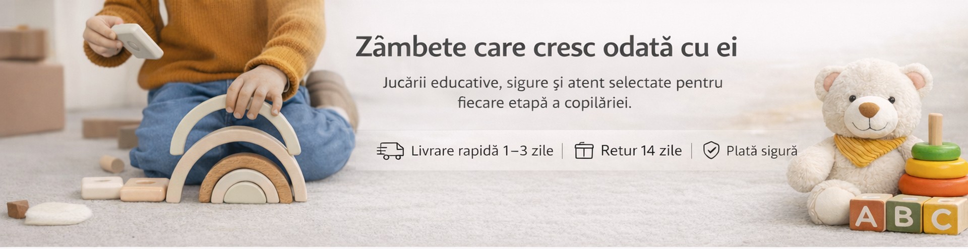 Produse alese cu grijă pentru siguranța și dezvoltarea copiilor.