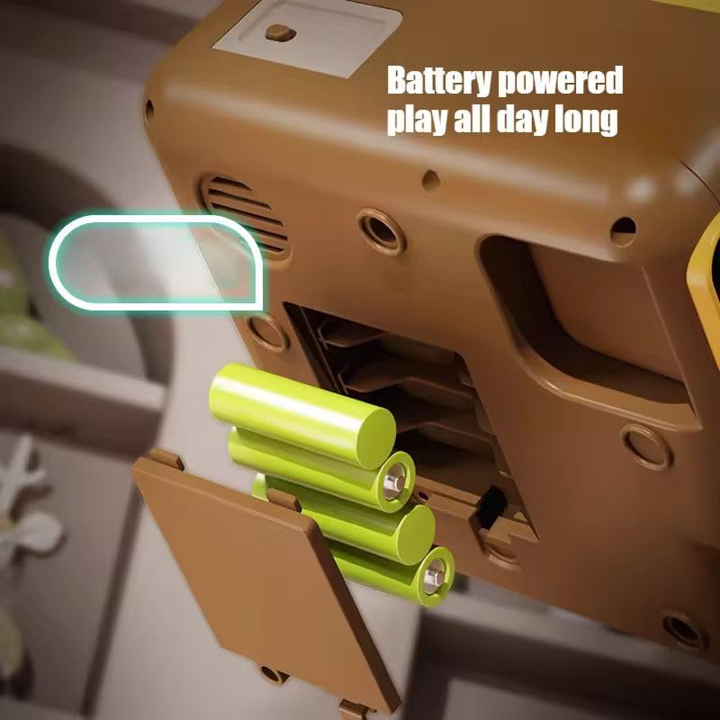Efecte captivante: Muzica veselă și luminile colorate fac experiența de joc și mai antrenantă, menținând entuziasmul la cote înalte și oferind un spectacol interactiv complet.