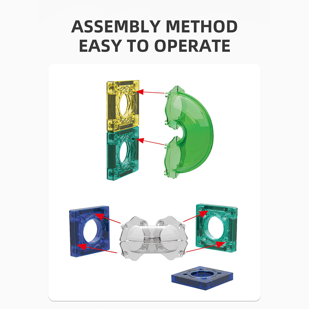 Descoperă o lume a construcțiilor și a mișcării cu acest set magnetic spectaculos! Cu ajutorul pieselor colorate și a magneților puternici, copilul poate asambla turnuri, piste și labirinturi prin care bilele vor rula în mod fascinant. Este jucăria perfectă pentru a transforma învățarea într-o aventură captivantă, combinând știința, tehnologia, ingineria și matematica (STEM) într-o activitate practică și creativă.