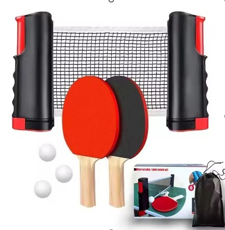 Setul la indemana poate fi luat oriunde si folosit dupa bunul plac. Tot ce ai nevoie este un blat de masa si este gata. Setul include o plasa reglabila, doua rachete si trei mingi.
